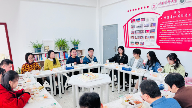 餐叙过程中,师生共同欣赏了学校一路发展的老照片集锦,感受了老一辈药大人坚持不懈的拼搏与努力,学校87年的发展历程离不开一代代药学建设者和奉献者。活动现场学生踊跃发言,分享了各自的生涯规划,畅谈药学梦想,表达了对学校的感谢。最后,师生一起分享了庆生蛋糕,活动现场气氛热烈。